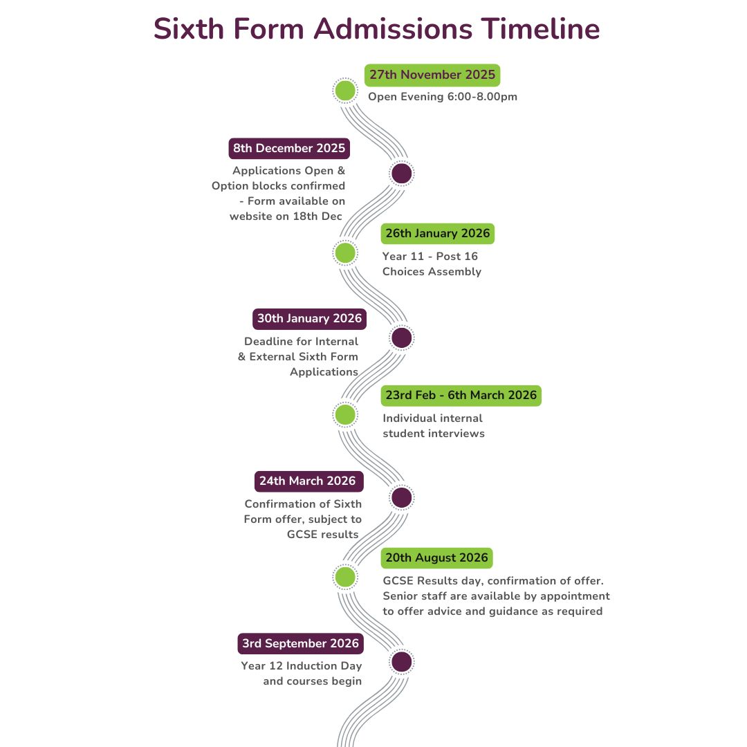 .Our Sixth Form open evening will take place on 27th November 2025, 6pm-8pm. Applications will be open from 8th December 2025 and be available on the website.